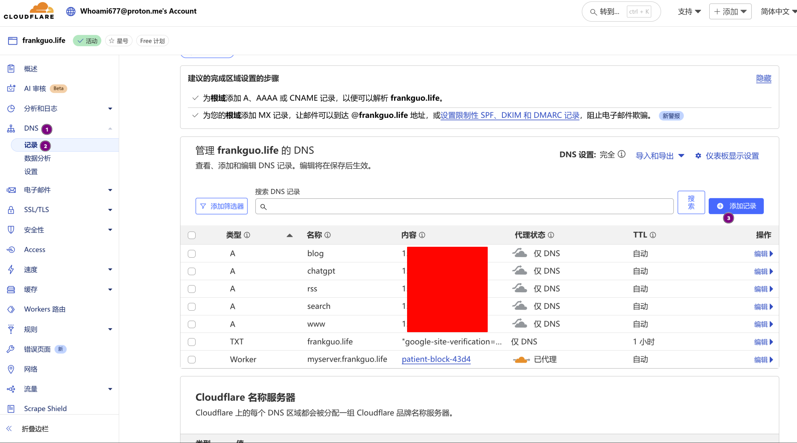 CloudFlare:https://dash.cloudflare.com